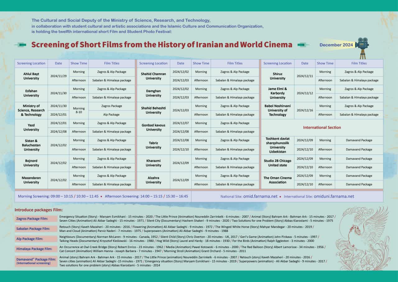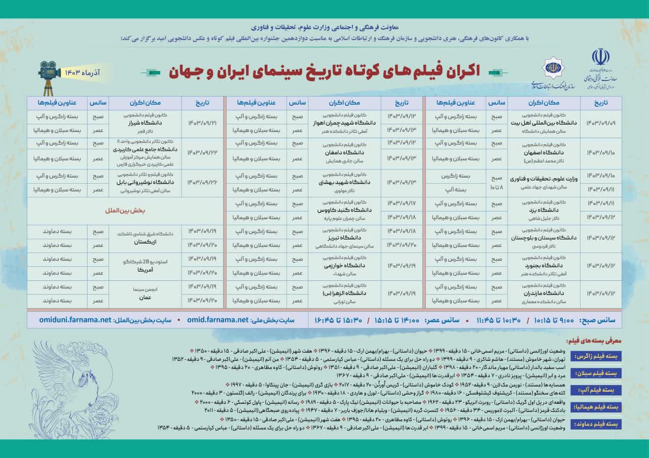 معاونت فرهنگی و اجتماعی وزارت علوم، تحقیقات و فناوری برگزار می کند: کارگاه ها و نشستهای دوازدهمین جشنواره بین اللملی فیلم کوتاه و عکس دانشجویی امید ۱۲ آذر ۱۴۰۳ | ۱۱:۵۶ کد : ۶۵۷۸ رویدادهای فرهنگی ارسال به دیگران نام شما ایمیل شما ایمیل دریافتکننده ارسال انصراف تعداد بازدید:۱۲۹