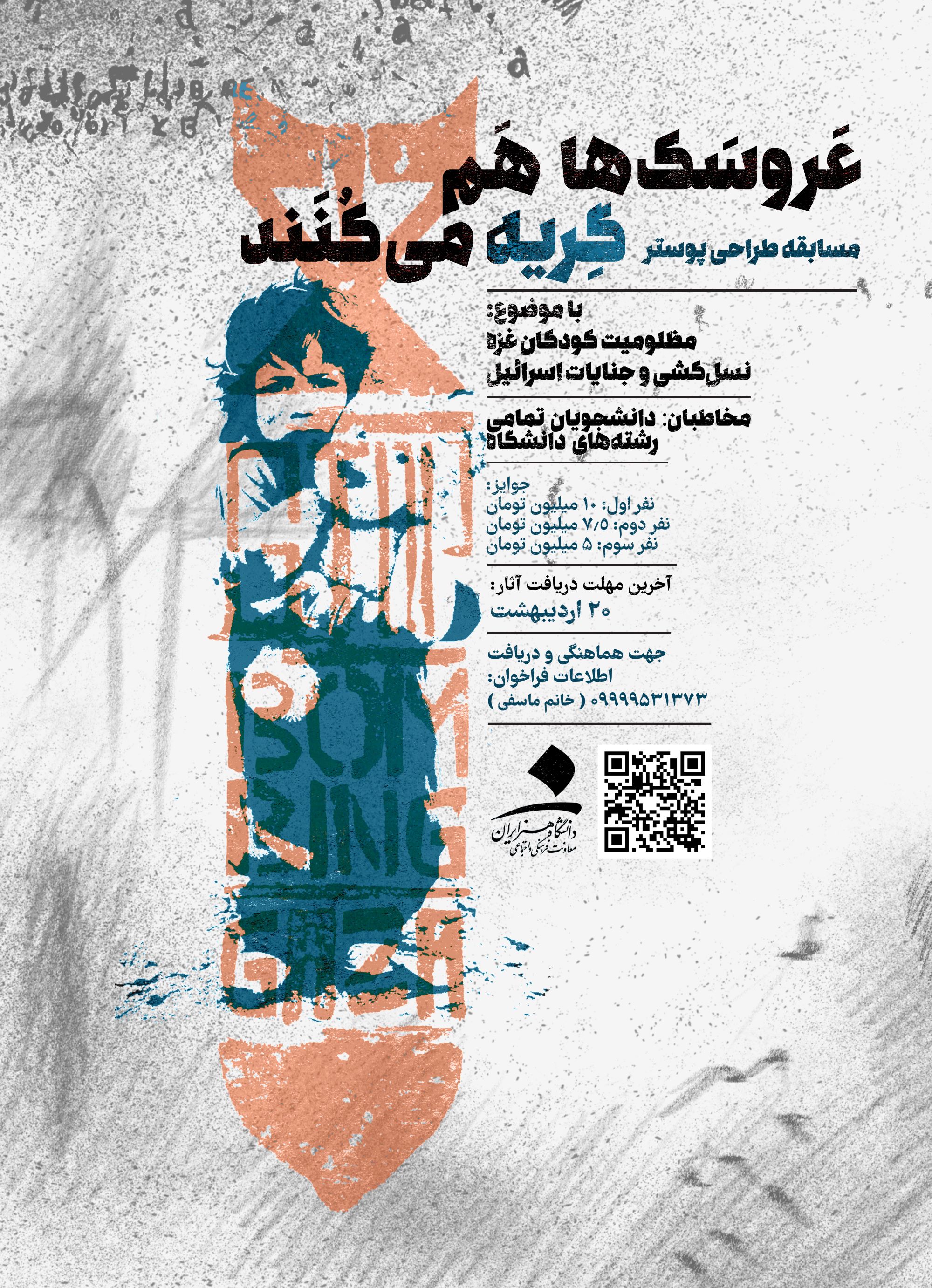 با قلم، با رنگ، با خشم و درد و امید، پوستری میسازیم برای فریاد. برای آنکه تصویر مظلومیت کودکان غزه،